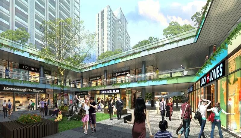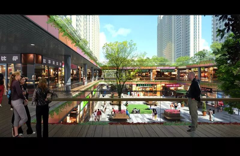 负一层至地面二层社区商业效果图:开放式社区商业满足本小区及外来访客消费人群。