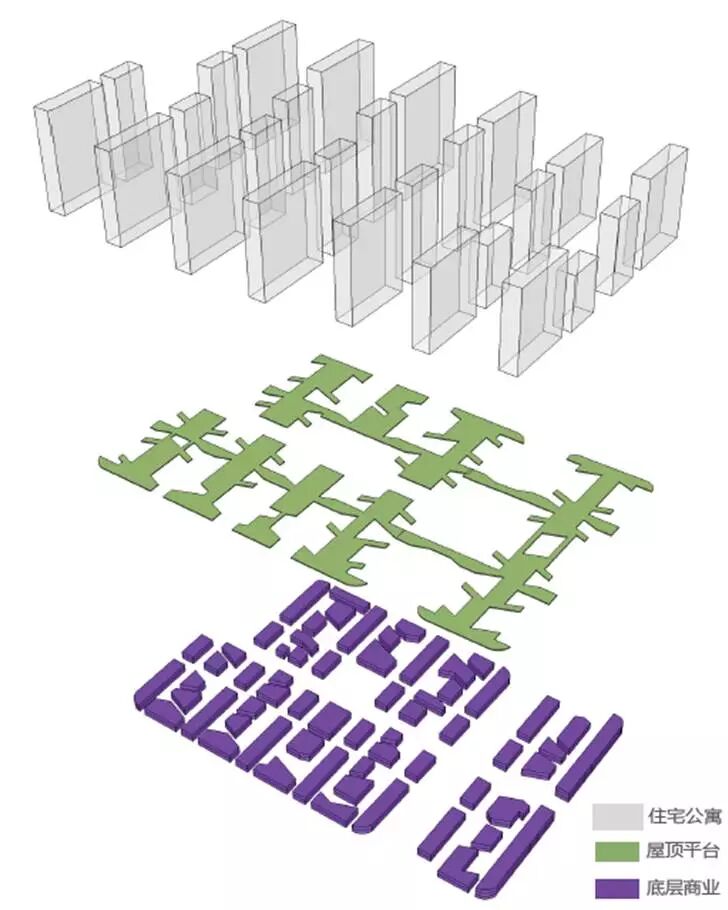 在今天,城际间网络化的交通已经拉近我们的生活。世茂集团济南项目正是位于济南市火车站对面,未来济南市拟在火车站北广场恢复昔日老火车站的风姿,济南火车站将承载公交、地铁、铁路交错换乘的枢纽作用,同时通过火车站北广场地下商业街将济南世茂天城项目与火车站连接,人流量密集,涌现无限消费需求为济南世茂天城带来了更多的消费可能。殖民时期留下的城市文化、“网格”的城市街区肌理,独特的交通枢纽位置为济南世茂天城项目披上了浓郁的地域特色面纱。为了使项目充满活力同时更加有序,避免大规模潜在消费群体对社区环境的影响,设计师借鉴德国火车站站前开发的模式,采用立体、开放、尺度适宜的方法对济南世茂天城进行了详尽的规划设计。