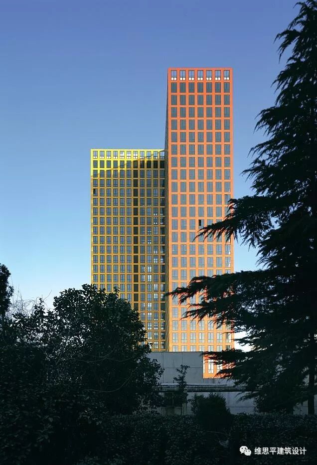 同样重要的是与此相匹配的严谨的立面,标准化模数化的构造,以及在坚持整体性大背景下的个性变化。规划与建筑营造出了新的艺术空间、色彩将人们从城市引向每户的室内。中心庭院是居住者向往所在,亦是城市与风景完美结合之处。光塔静静矗立,指引着人们都市生活的方向。